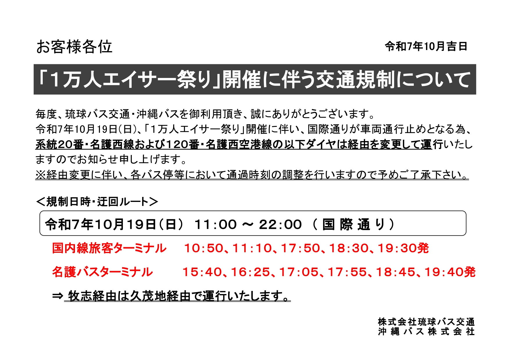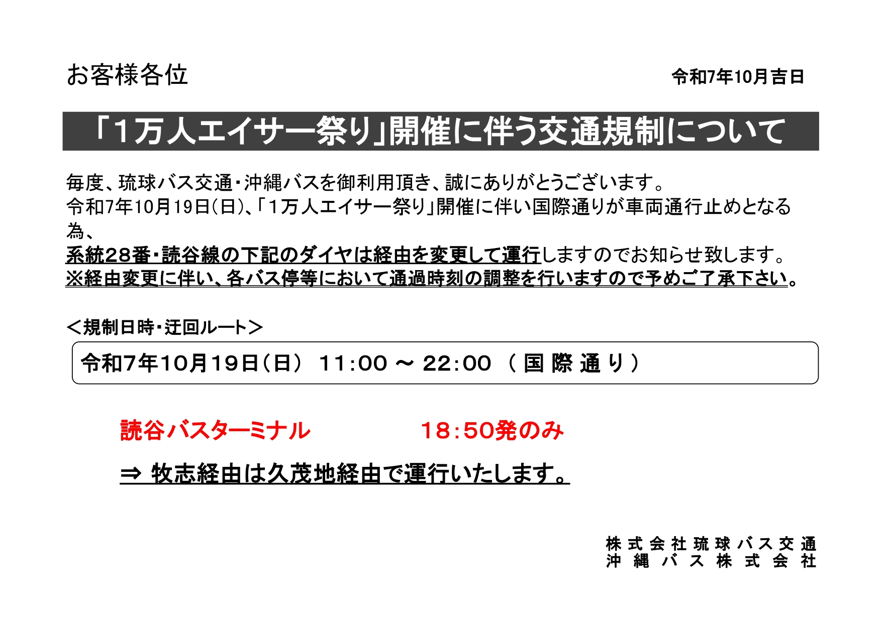 毎度、沖縄バスを御利用頂き、誠にありがとう ございます。